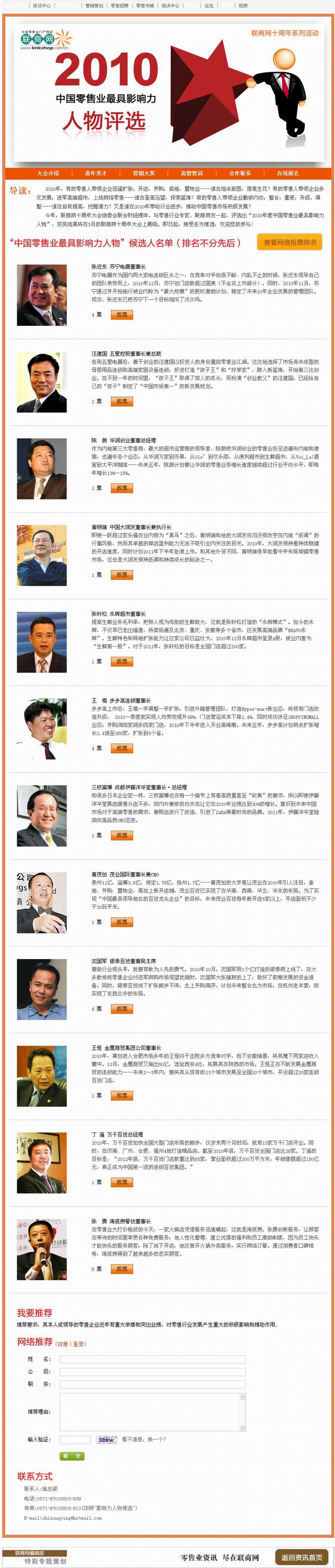 2010年,有的零售人帶領(lǐng)企業(yè)迅猛擴(kuò)張:開店,并購,買地,置物業(yè)……誰在指點(diǎn)版圖,落筆生花?有的零售人帶領(lǐng)企業(yè)多元發(fā)展:進(jìn)軍高端超市,上線網(wǎng)絡(luò)零售……誰在登高遠(yuǎn)望,探索藍(lán)海?有的零售人帶領(lǐng)企業(yè)勤修內(nèi)功:整合,重裝,升級(jí),調(diào)整……誰在自我提高,挖掘潛力?又是誰在2010年帶動(dòng)行業(yè)進(jìn)步,推動(dòng)中國零售市場(chǎng)積極發(fā)展?