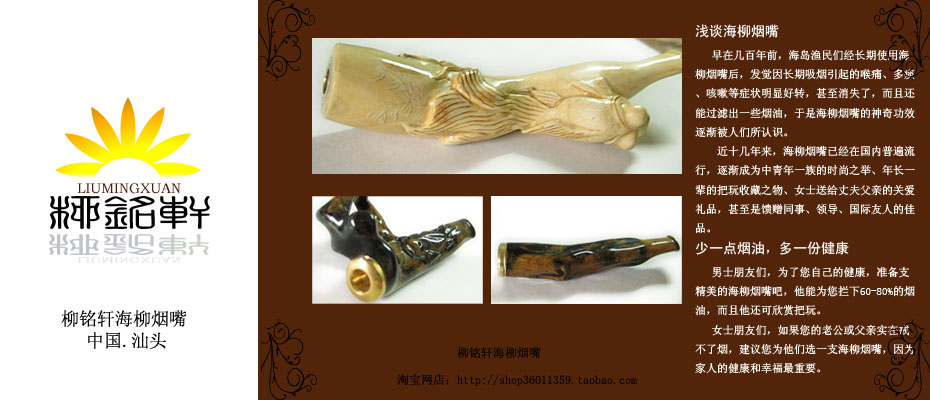 5、海柳質(zhì)地堅(jiān)硬,不腐蝕,耐燃燒,一支海柳煙嘴的使用壽命可達(dá)上百年以上,可代代相傳。