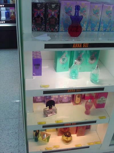安娜蘇在一樓也設(shè)有精致配飾專柜,延續(xù)著紫色的魅力; 女鞋區(qū)最有看頭——謙卑柔和的服務(wù)態(tài)度,兩名顧客正在試鞋,服務(wù)員統(tǒng)一單膝跪地,雙手捧著鞋子,若顧客坐著她們會保持與顧客平視或者微微仰視的姿態(tài),面帶微笑的于客人交流,附帶有韻律的點(diǎn)頭(這是他們說話的習(xí)慣動作,囧)。無論如何,這種服務(wù)方式讓我這個外人看了都覺得貼心。