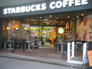 轉(zhuǎn)角口的PARCO店內(nèi)有樂器店以及星巴克。