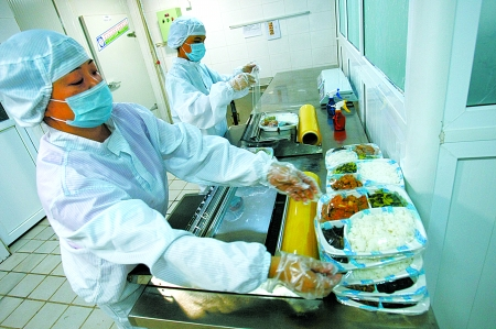 “日本人的要求實在是太嚴(yán)格了,甚至為了標(biāo)簽上一個飯團(tuán)的重量多一克少一克都可以跟我們爭兩個小時。”嚴(yán)琦一說起這樁合作,也忍不住大倒苦水。記者在其過渡工廠看到,不添加防腐劑可把快餐的保質(zhì)期延長至48小時,在幾乎封閉的生產(chǎn)車間里,基本上每一個環(huán)節(jié)都經(jīng)過嚴(yán)格的細(xì)菌控制。而為了確定每份飯菜分量精確,廚房內(nèi)電子秤隨處可見。“我們能夠被接受的誤差是每份快餐2克,這就必須得控制每一個單項菜品,可以說一個飯團(tuán)少兩顆米都過不了關(guān)。”嚴(yán)琦稱,“和人家合作才知道我們的餐飲做得太粗放了。”就連煮飯,日方都專門對員工進(jìn)行了培訓(xùn),不僅要用專門的煮飯機,還有一整套精細(xì)化的程序。比如說,在淘米后必須把大米先浸泡50分鐘,然后烘半個小時,再關(guān)火后燜40分鐘立刻將飯撥松,揮發(fā)水分,以此保證米飯的口感。