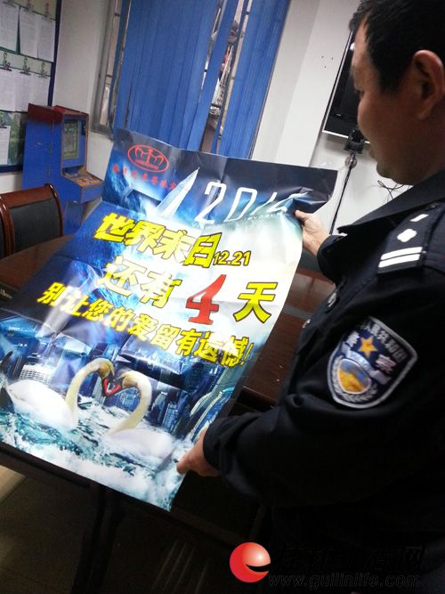 桂林一珠寶店用末日倒計時促銷被警方叫停 今天是2012年12月21日,也是一度謠傳的“世界末日”。雖然國內(nèi)國外的權威專家都曾出面辟謠,并不存在“末日”之說,我市中山路上的至尊珠寶店卻借著“末日潮”促銷,昨日被警方叫停。