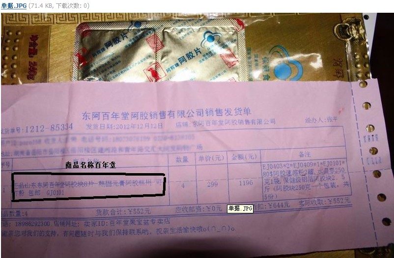 1、百年堂品牌宣傳欺詐:嚴重違反《消費者權(quán)益保護法》第19條:“經(jīng)營者應(yīng)當向消費者提供有關(guān)商品或者服務(wù)的真實信息,不得作引人誤解的虛假宣傳”。1、從百年堂阿膠的宣傳,從我買,到付款,到收到的銷售單據(jù),商家一直在強調(diào)自己賣的就是“百年堂”牌的阿膠。作為第一次消費阿膠的人來說,為了解更多的阿膠信息,我只能通過搜索“百年堂牌阿膠”,來甄別,結(jié)果百度顯示“百年堂阿膠”是百年老字號,阿膠中的珍品等等(當然這也是百年堂垃圾公司的在百度引擎制造的一個陷阱,如當時本人用GOOGLE,或者搜狗引擎就不會上當了,具體不再闡述),當看到這些我就心動了!著了他們的當。如果商家當時有明確告知是“阿輝”牌,百年堂只是是銷售公司(大家可以去百度看看“阿輝牌”阿膠),我還會購買他們家的阿膠嗎,這是赤裸裸的商品的虛假宣傳。2、他們提供的商標證,持有人是“武漢百年堂保健食品有限公司”,在武漢工商局網(wǎng)站企業(yè)查詢,并無此企業(yè)。