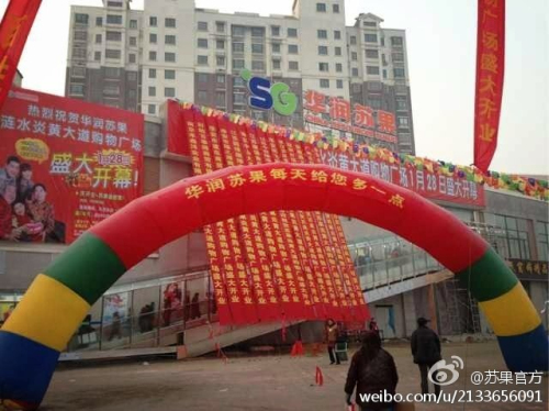 圖為:安徽樅陽(yáng)首家華潤(rùn)蘇果購(gòu)物廣場(chǎng)