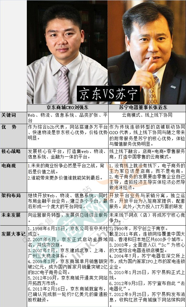 獨(dú)家:決戰(zhàn)電商 京東蘇寧孰優(yōu)孰劣? 聯(lián)商網(wǎng)消息:京東與蘇寧素來是爭(zhēng)鋒相對(duì)旗鼓相當(dāng)?shù)膶?duì)手,多年的競(jìng)爭(zhēng)培養(yǎng)出一份“心有靈犀”的默契,兩家董事長(zhǎng)不約而同地在同一天發(fā)表2013工作部署。2月17日,蘇寧董事長(zhǎng)張近東在公司年度春季工作部署會(huì)發(fā)表講話,當(dāng)晚,京東商城CEO劉強(qiáng)東發(fā)出內(nèi)部員工郵件。