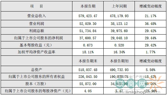 報(bào)告期內(nèi),公司于2012 年9 月20日實(shí)施了2012年半年度利潤分配方案:以2012年6月30日公司總股本34,920萬股為基數(shù),以資本公積金向全體股東每10股轉(zhuǎn)增6股,轉(zhuǎn)增后公司總股本為55,872萬股。