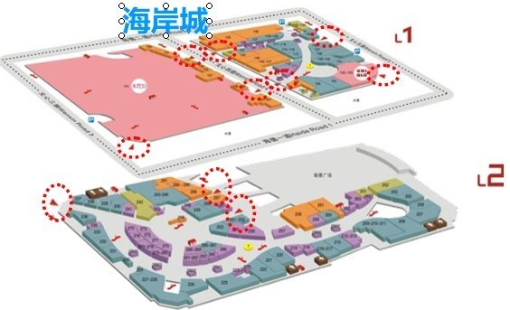 大型購物中心的聯(lián)外道路可以說是人流交通動線中很重要的一項(xiàng),在規(guī)劃聯(lián)外道路系統(tǒng)時,應(yīng)考慮該項(xiàng)目周邊道路現(xiàn)有的交通狀況,主大門及廣場可面向主道,這樣才能吸引人流及方便顧客出行,此外側(cè)門最好是另有其他的聯(lián)外道路,且盡量避免以過境交通量很大的道路作為其唯一聯(lián)外道路,聯(lián)外道路應(yīng)盡可能聯(lián)接地區(qū)性主要干道或快速道路,以充分發(fā)揮其集聚的功能,并可使其對周邊道路的交通影響減至最低。聯(lián)外道路與完善的交通運(yùn)輸網(wǎng)連結(jié),能擴(kuò)大購物中心的輻射范圍,擴(kuò)大其商圈,能方便消費(fèi)者到達(dá)。例如廣州天河城,除主門(北門)面向交通量很大的天河路外(非快速路),其它三個門分別有天河南一路、體育西路、宏城廣場及地鐵作為其聯(lián)外道路,并通過它們與廣州黃埔大道、環(huán)城高速、華南快速、廣深高速等密切相連,使其商圈范圍覆蓋可達(dá)整個珠三角,并創(chuàng)出單日最高人流達(dá)80多萬的成績。另商業(yè)綜合體或購物中心的聯(lián)外人流交通動線應(yīng)設(shè)置多個出入口,一方面可以使顧客更加便捷的進(jìn)入到商業(yè)體,另一方面多出入口可以有效避免由于人流過大而造成的堵塞,深圳目前大型的shopping mall的出入口往往都會達(dá)到5個以上。例如深圳海岸城首層與二層聯(lián)外人流交通出入口共達(dá)10個,人流可以從不同的方向非常便捷地流入海岸城。(如下圖)