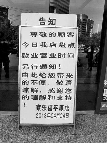 記者注意到,該超市門口豎立的告知牌上,寫明歇業(yè)的原因卻是“今日我店盤點(diǎn)”,并沒有任何關(guān)于此事件的說明。