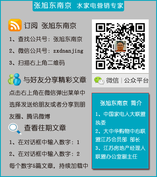 【張旭東南京 微信公共平臺開通啦】新浪微博認(rèn)證用戶,騰訊微博認(rèn)證用戶張旭東南京 開通同名微信公共平臺。在這里,老張將與您交流凈水業(yè),家電業(yè),地產(chǎn)業(yè)觀點;個人創(chuàng)業(yè)經(jīng)歷,營銷管理感悟等,感謝您的關(guān)注。請掃描以下二維碼或者搜索微信公共平臺:張旭東南京(或zxdnanjing)。