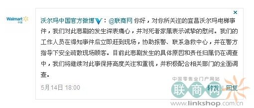 事后,沃爾瑪中國官方微博 私信聯(lián)商網(wǎng),詳情如下: