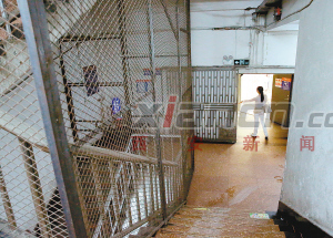 在3樓的崇尚百貨商場內,多個安全出口被鎖閉,僅有一處安全出口大門未鎖,但記者進去觀察卻發(fā)現(xiàn),安全出口內左側設有水池臺,墻面上張貼著“百貨部水具放置處”字樣標識,許多水杯放在一個架子上。右側原本可供遇緊急情況或事故發(fā)生時疏散逃生的出口,上樓樓梯暢通,而下樓的樓梯前卻一面鐵鎖鎖死的鐵網門擋道,只能上不能下,消防通道不暢,極不利于疏散逃生。
