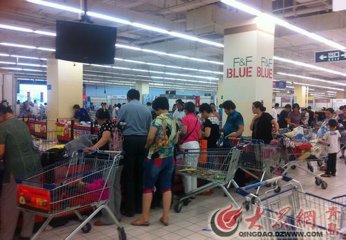 樂購超市內(nèi)消費(fèi)者搶購