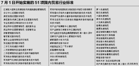 國內(nèi)貿(mào)易行業(yè)標(biāo)準(zhǔn)密集發(fā)布實(shí)施