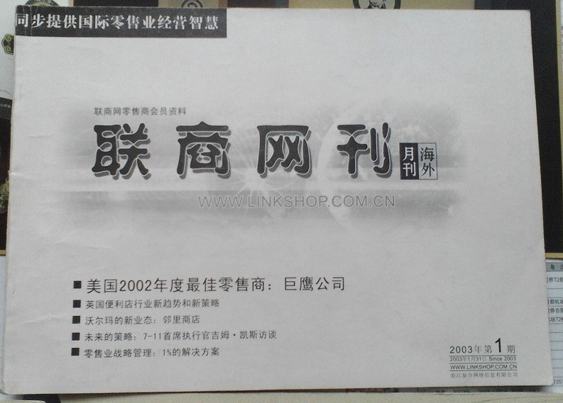 自此以后,聯(lián)商網(wǎng)就成了我的工作助手,我的知識庫,隨用隨查,按需取材,加工改造。后來,貫到了2003年,聯(lián)商網(wǎng)推出了《聯(lián)商網(wǎng)刊》,介紹國外的超市管理經(jīng)驗,定位于“同步提供國際零售業(yè)經(jīng)營智慧”,以“引領、啟迪、創(chuàng)新”為辦刊宗旨,全方位介紹國外零售業(yè)的經(jīng)營與管理做法。