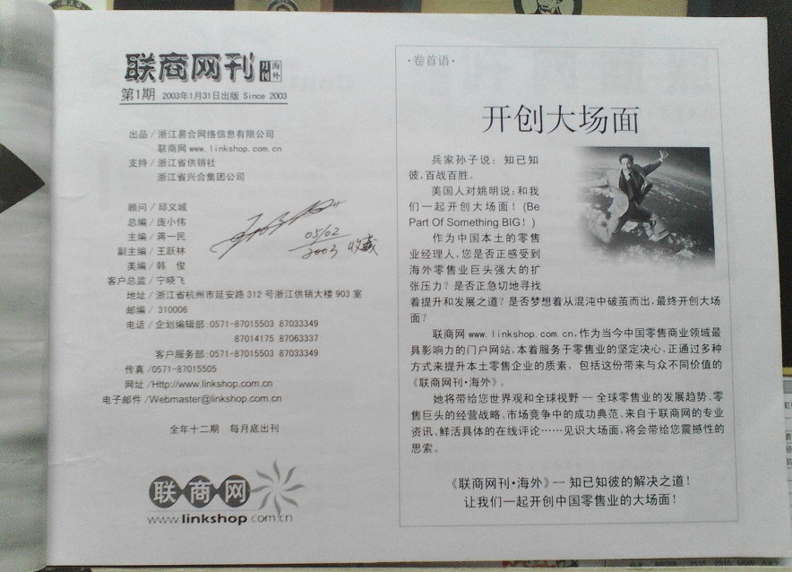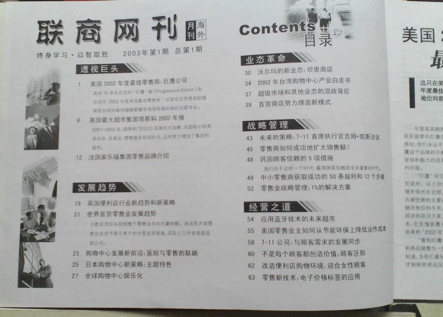 《聯(lián)商網(wǎng)刊》2003年第1期開篇內(nèi)容