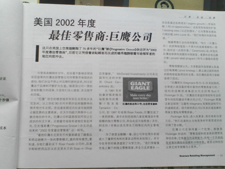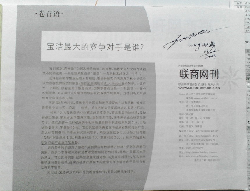 《聯(lián)商網(wǎng)刊》的推出,讓我們從一個側(cè)面,了解到西方國家的商業(yè)是如何運作的,通過這個渠道,得以窺見身居世界500強的零售大鱷,是如何管理的。