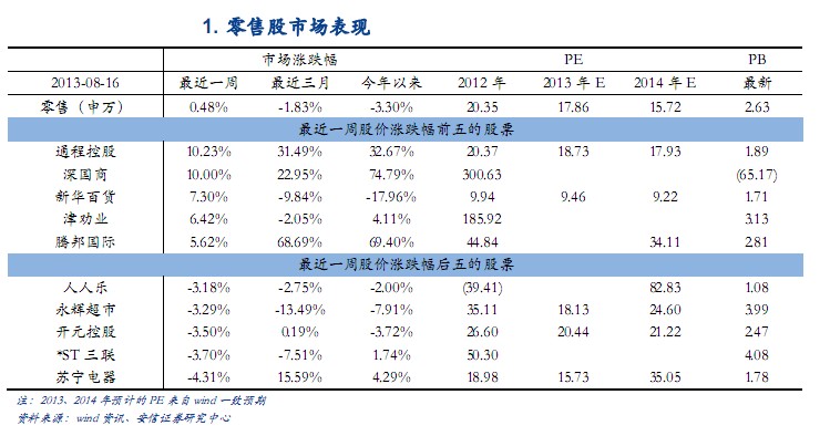 投資建議: 下調(diào)零售主業(yè)2013-2015年凈利增速。我們預計2013-2015年凈利增速為-12.8%、36.9%和 10.5%,對應 EPS 為 0.58、0.80 和 0.88 元,扣除房地產(chǎn)業(yè)務對應的 EPS 為 0.61、0.66和 0.73元?紤]到集團資產(chǎn)注入預期,給予零售主業(yè)2013年 15倍PE,房地產(chǎn)業(yè)務按凈現(xiàn)值估值,給予 9.41 元目標價(包含 0.26 元房地產(chǎn)業(yè)務),維持增持-A 投資評級。