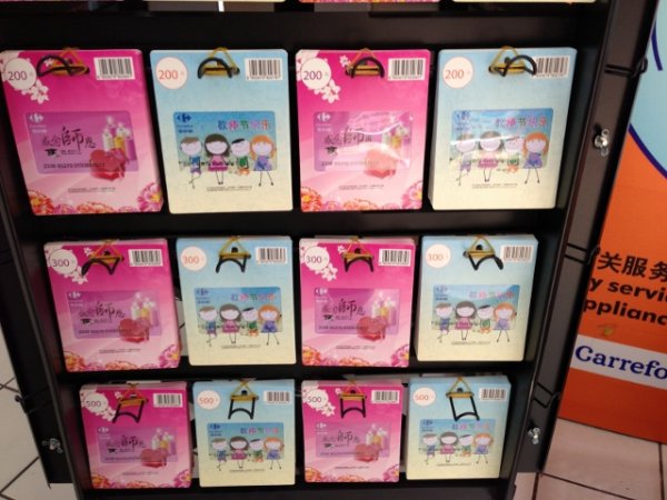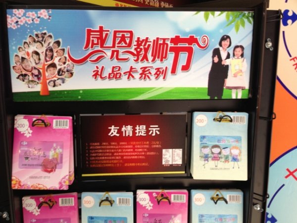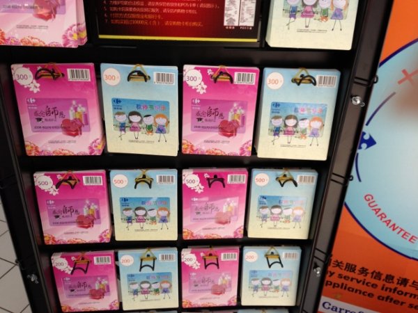身處輿論的風口浪尖,家樂福做出了積極回應。昨日下午,記者再次探訪了家樂福保利店和永樂店。原本擺放在兩個門店入口顯眼處和服務臺的“教師節(jié)禮品卡”專柜,都已撤下。超市購物卡服務臺的工作人員都說,不再售賣了。