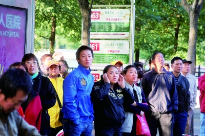這條便道上聚滿了人,推著自行車的、騎電動三輪車帶著行動不便的老人的、拉著裝菜的小車的……再加上或步履匆匆的上班族或神態(tài)悠閑的晨練者,摩肩接踵的程度簡直如同旅游景點。所幸有志愿者疏導,現(xiàn)場并不混亂。
