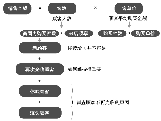在這里,我們把 “客數(shù)×客單價”這一用于提升銷售額的公式進一步進行分解。