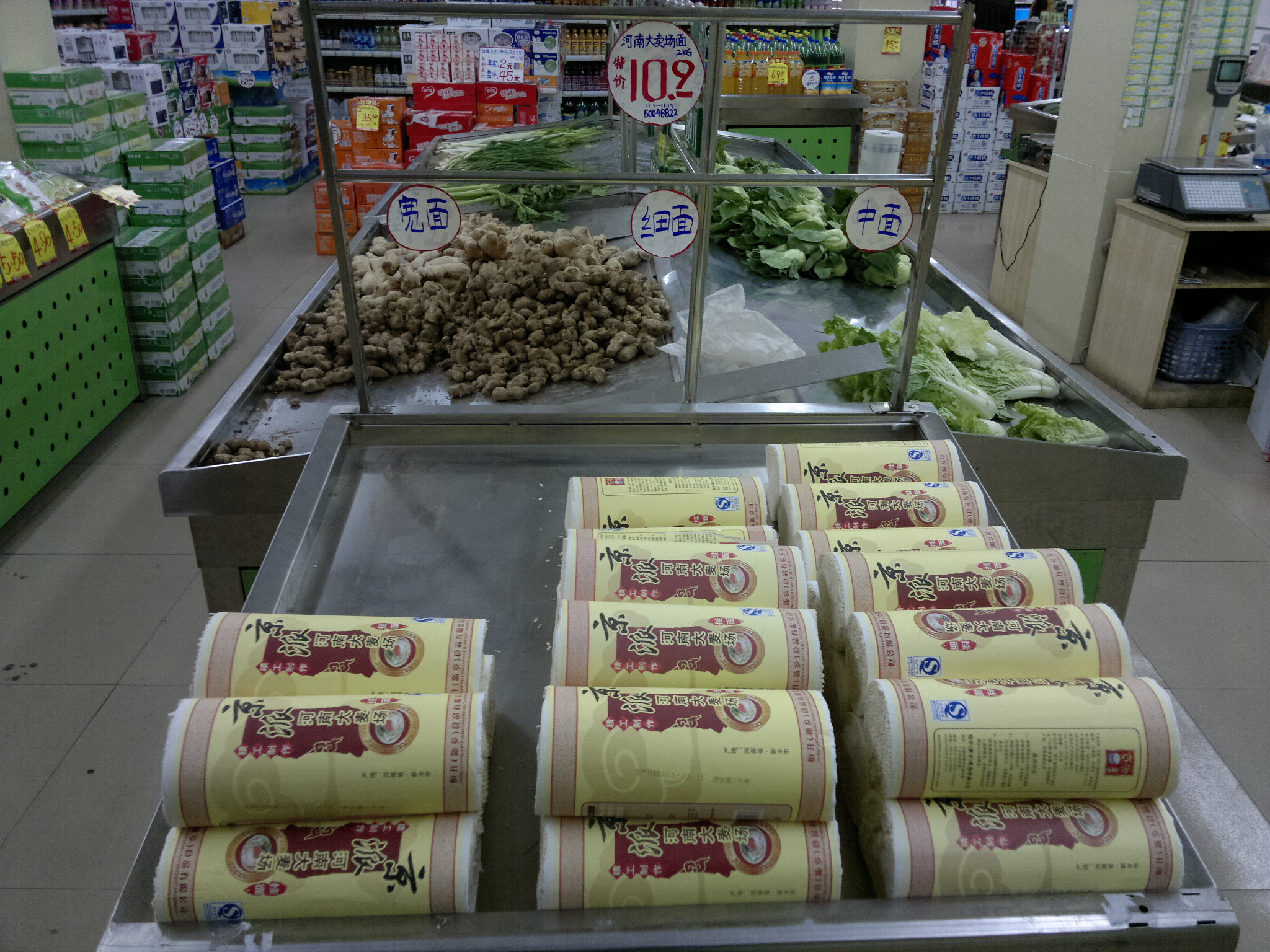 這次新上的干面單品1個條碼有寬中細(xì)三種寬度,于是我用了堆頭蔣三種寬度的干面每種各上一件,以觀察當(dāng)?shù)啬姆N寬度的干面最好賣,進(jìn)而進(jìn)行貨架的品類管理。