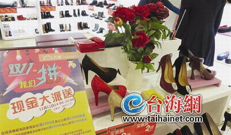 同樣不愿錯過“雙十一”商機的還有廈門天虹百貨,甚至連天虹百貨的超市也來“湊熱鬧”。“線下活動從1日就開始了,換購1.8倍-2.2倍(5.5折-4.5折),相比之下,5折封頂遜斃了。”天虹人士透露,從昨日下午2點開始,促銷活動整體升級,原來1.8倍的上升至2倍,2倍的上升至2.2倍,而且滿2000元還送100元現(xiàn)金。
