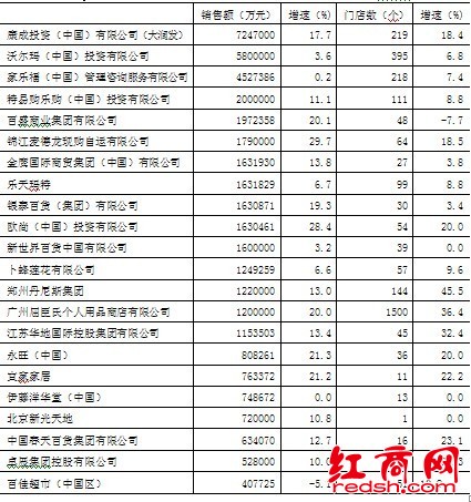 主題:2012年零售百?gòu)?qiáng)企業(yè)中主要外資企業(yè)銷售及門店變化情況