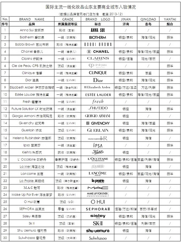 RE:國際主流一線化妝品【山東三大城市】入駐情況 引用 南杭北燕 發(fā)表于 2013-12-10 22:23:00 的帖子:
