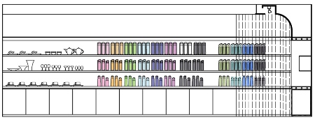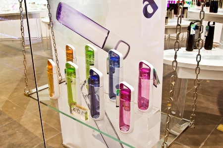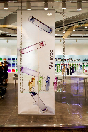 為了最大限度的提高視覺沖擊力,我們還設計了重點突出,色彩豐富的產品大海報,將它們懸掛在商品展示貨架的后面。象貨架一樣,它們同樣可以自由移動和變換位置。最為重要的是,根據(jù)不同的季節(jié)或者市場需求,商店櫥窗展示主題可以用多種不同形式,數(shù)量,尺寸,位置的海報來展現(xiàn)出來。此外,在特定店內活動期間,商店也可以通過在海報的位置懸掛半透明隔簾的形式起到隔離和加強私密性的作用。