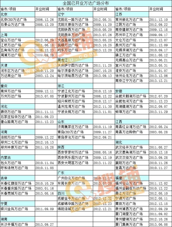 2012年初,搜鋪網(wǎng)曾做過(guò)2011年全國(guó)新開(kāi)業(yè)萬(wàn)達(dá)廣場(chǎng)項(xiàng)目盤(pán)點(diǎn),統(tǒng)計(jì)結(jié)果顯示2011年全國(guó)新開(kāi)業(yè)萬(wàn)達(dá)廣場(chǎng)數(shù)量為15個(gè)(見(jiàn)《萬(wàn)達(dá)廣場(chǎng)2011年開(kāi)業(yè)項(xiàng)目大盤(pán)點(diǎn)》),如今,這一數(shù)字正在逐年遞增。