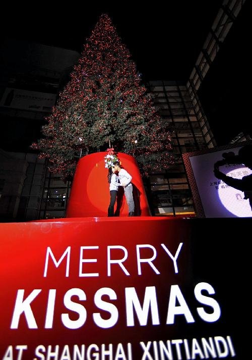RE:上海新天地門口的圣誕樹,只要情侶親吻就能點(diǎn)亮