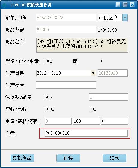 分析下來,此類業(yè)務(wù)有如下特點:單次送貨品項少、單品的送貨量卻比較大、且批次單一。每次送貨少則十幾個托盤,多則幾拖車,此類業(yè)務(wù)如果依舊采取傳統(tǒng)方式用RF槍掃描貨品條碼,再掃描托盤條碼,輸入生成日期,數(shù)量等一步步操作來收貨,收貨效率可想而知?紤]到該業(yè)務(wù)的特點,我們設(shè)計出“快速收貨”操作,首先讓供應(yīng)商按碼盤標準進行卸貨碼盤,碼盤完成后,對每個單品每一托盤的數(shù)量和批次應(yīng)該一樣,那么收貨員在收完該單品的第一托盤以后,其余幾十個托盤,只需要用RF槍掃描托盤條碼,回車確認就完成一個托盤的收貨,再掃描下個托盤條碼回車確認就完成了第二個托盤的收貨,依次下去,每個托盤只需要掃描一下托盤條碼確認就完成了收貨動作,極大地簡化了收貨的操作,提高作業(yè)效率。