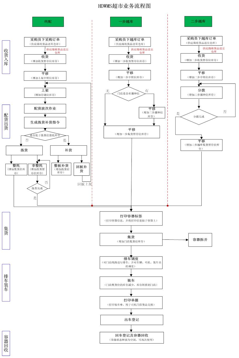 下面以流程圖的形式展示海鼎HDWMS系統(tǒng)對這三種業(yè)務(wù)流的解決方案,