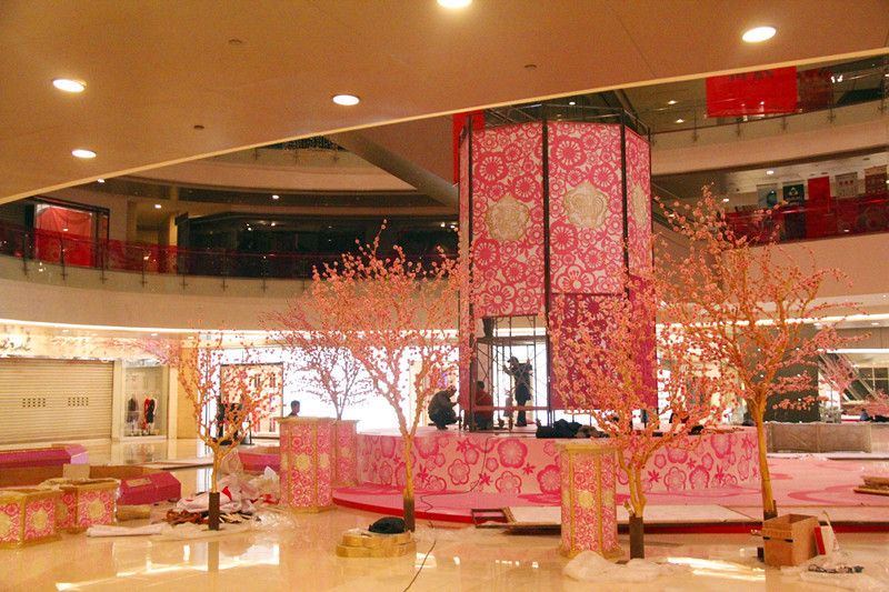 更喜歡粉色的,更有桃花的味道,疑問:萬(wàn)象城這些大手筆的美陳在節(jié)后是如何安置的?
