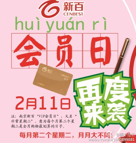 南京新百會員日,2.11再度來襲!