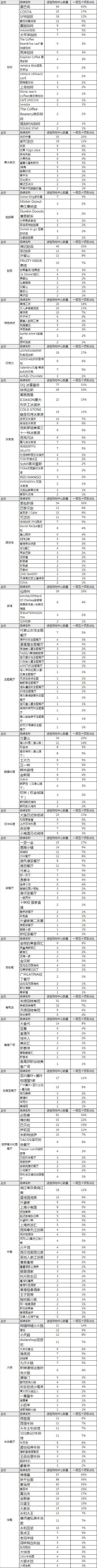 ,越來越脫離以“購物為中心”了,餐飲和休閑娛樂等比例越來越高。下面是各個餐飲品牌,在150個在調(diào)查的購物中心的數(shù)據(jù),希望能給您做個有益的參考。