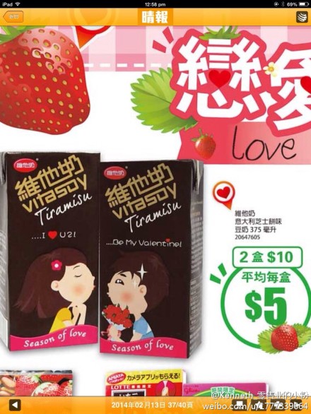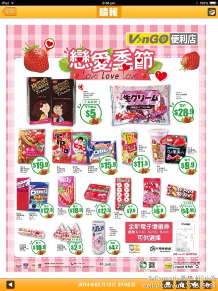 香港華潤(rùn)VnGo便利店情人節(jié)DM,主題為“戀愛季節(jié)”,大部分都是日本進(jìn)口的草莓產(chǎn)品,當(dāng)然亮點(diǎn)也是每年一度的維他奶情人節(jié)限量包。小粉還是喜歡沒(méi)有杜杜的情人節(jié)DM。@Kenneth_零售業(yè)的小粉