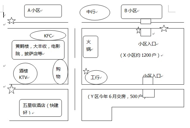 五角星代表便利店,工行旁的五角星就是所在位置,工行對(duì)面就是購物中心(不知是否會(huì)影響到店里的銷售額),中間被綠化帶分成6個(gè)機(jī)動(dòng)車道,4個(gè)非機(jī)動(dòng)車道,但是行人還是會(huì)從綠化帶過馬路,工行所在這個(gè)小區(qū)南邊小車出入的比較多,北邊行人出路比較多。Y小區(qū)靠大馬路這邊以后也是店面,不知是利還是弊。所租店鋪樓層較高,可以做閣樓,放些庫存物品,最里面還有1個(gè)衛(wèi)生間和房間。希望大家?guī)兔λ阆卵b修該店鋪要多少成本(考慮閣樓,以及便利店做成閣樓需要什么材料,如何裝飾)。希望大家能夠積極探討,謝謝