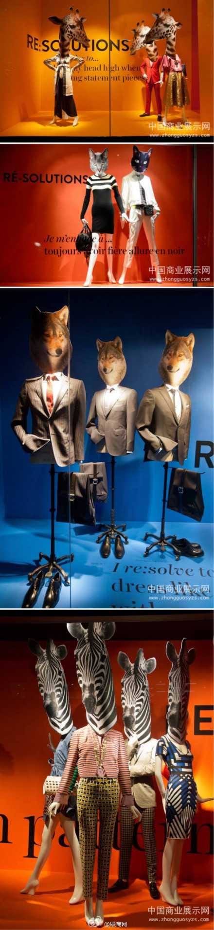 #經(jīng)典陳列#【加拿大高端連鎖百貨Holt Renfrew2014春季櫥窗】櫥窗的設(shè)計創(chuàng)意十足。櫥窗中的模特以獸首展示給大家,賦予創(chuàng)作靈感,帶領(lǐng)大家重新啟動衣柜的春季風(fēng)格![疑問] 模特以獸頭裝扮展示想要表達(dá)什么情感?