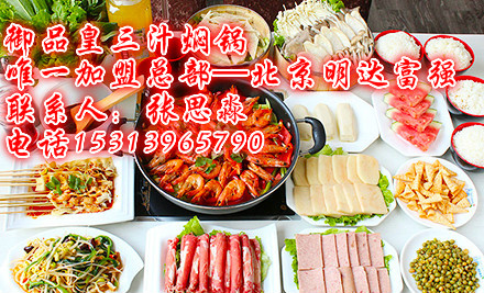 御品皇三汁燜鍋是餐飲行業(yè)中的一枝奇葩。在其發(fā)展過(guò)程中,以其獨(dú)創(chuàng)的養(yǎng)生、健康、養(yǎng)顏、滋補(bǔ)的新餐飲理念。時(shí)尚亮麗的裝修風(fēng)格,寬敞舒適的就餐環(huán)境。