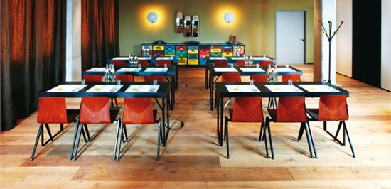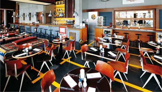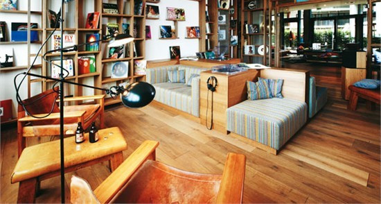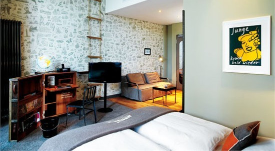 與保留歷史與文化、凸顯地區(qū)航運特色不無關(guān)系,漢堡港口新城25hours酒店房間的布置忠誠于最原始的水手生活,噴漆房門號,海藍色墻壁,粗加工的褐色原木地板,墻壁上懸掛著的軟梯,木制古董行李箱改裝的寫字臺,甚至散發(fā)著暖黃色燈光的地球儀臺燈,都讓人恍然覺得自己置身于遠洋海輪的客艙中。靜謐的海港之夜,海浪聲聽起來近在咫尺,拉開窗簾,就能看到一片棲息著船只的海面。見多了郵輪將客房布置成五星級飯店的客房,這樣“原始”的質(zhì)感令人頗感新意。