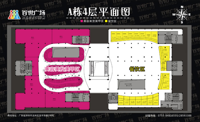 商鋪定位:年輕快時(shí)尚潮流服裝;個(gè)性精品服飾、鞋帽、內(nèi)衣、箱包、化妝品、精品百貨;美容美發(fā)美甲;特色餐飲、中檔餐飲、快餐飲以及擁有特色經(jīng)營項(xiàng)目的優(yōu)先引進(jìn)。經(jīng)營者需有獨(dú)立的上貨渠道,設(shè)計(jì)、裝修風(fēng)格需符合百世廣場(chǎng)整體形象,經(jīng)過批準(zhǔn)方可裝修施工。