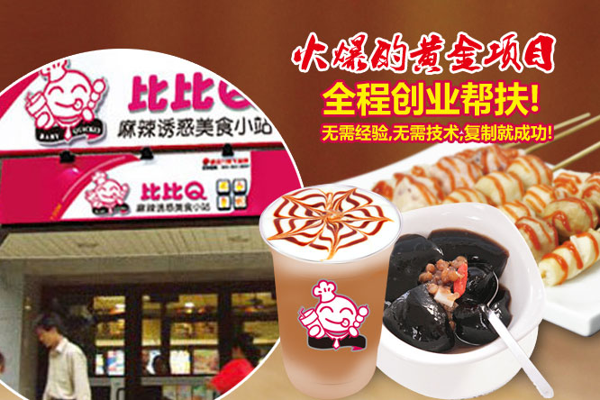 最火的小吃加盟連鎖====比比Q,總部扶持開(kāi)店,提供裝修圖紙,讓您開(kāi)店無(wú)憂。