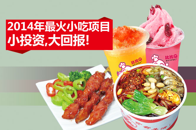 近年來(lái)小吃行業(yè)發(fā)展迅速,創(chuàng)業(yè)選擇一個(gè)小吃項(xiàng)目是個(gè)不錯(cuò)的主意,那2014小吃加盟哪家好呢?最火的特色小吃加盟,比比Q投資小、風(fēng)險(xiǎn)低、利潤(rùn)高,是個(gè)非常適合投資者創(chuàng)業(yè)的好項(xiàng)目。