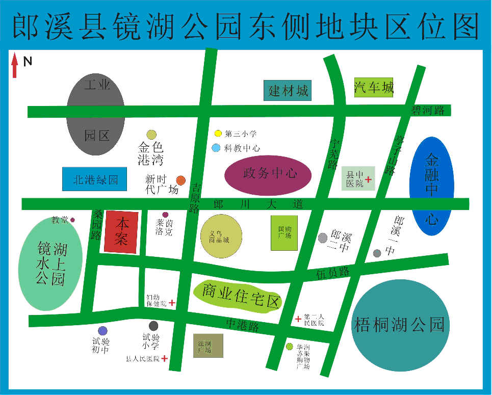 (5)地塊緊鄰城市主干道---郎川大道。郎川大道:將政務(wù)、金融、娛樂、教育、醫(yī)療、休閑融為一體。人口密集、商業(yè)氛圍濃厚,是郎溪極具潛力、最有價值的城市干道。