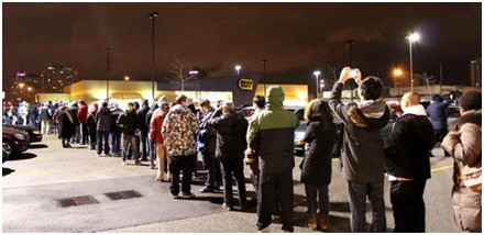 黑色星期五是美國(guó)最大的購(gòu)物節(jié),時(shí)間是在每年感恩節(jié)后的第一天。在美國(guó),做帳時(shí)傳統(tǒng)上會(huì)用紅色表示赤字,黑色表示盈利,所以用黑色星期五命名表達(dá)盈利期望。這一天,全美各大商場(chǎng),如百思買、沃爾瑪?shù),都給出大幅度的折扣。消費(fèi)者們?yōu)榱藫尩较蘖康奶貎r(jià)品,往往午夜就開(kāi)始蜂擁至賣場(chǎng)排隊(duì)。搭帳篷搶購(gòu)可以說(shuō)是黑色星期五的特色之一。