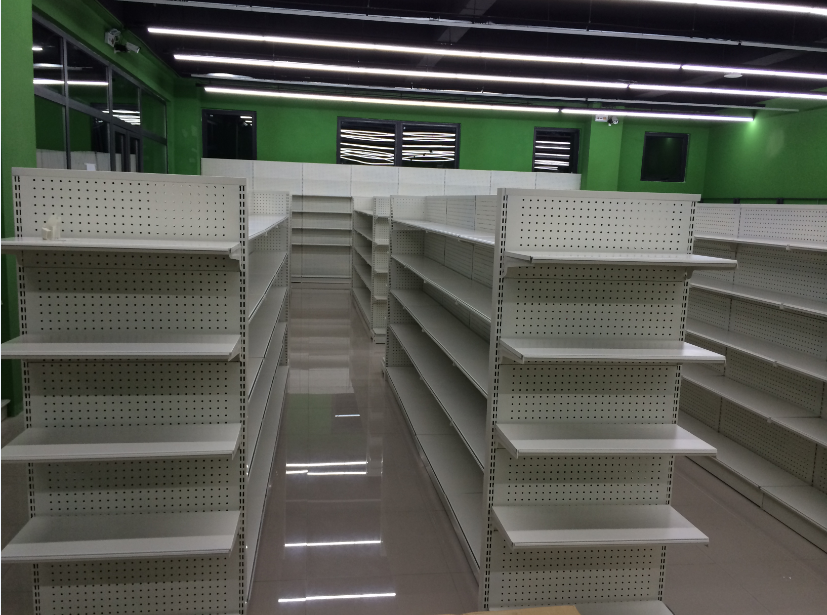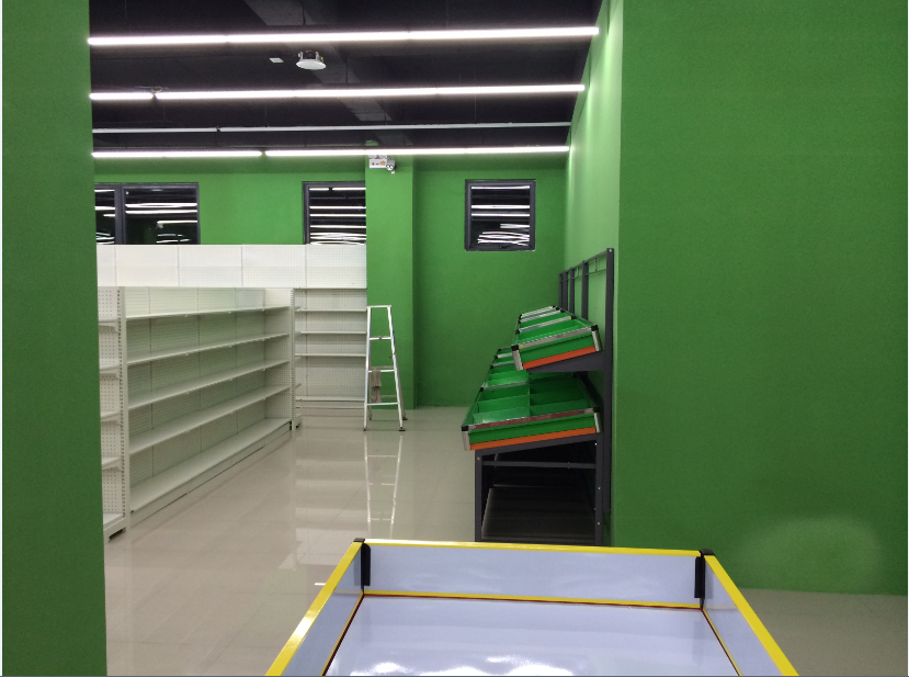 最右邊靠果蔬的那排貨架放廚房調料,醬油,油,雞粉,老干媽類。對應著最右邊靠墻的放廚房用品刀,保鮮膜類,碗, 一直往左邊,就放紙巾類(廚房用品旁邊),再過去就擺放衛(wèi)生巾,然后衛(wèi)生巾旁邊就是襪子,男士刮胡刀,男士內(nèi)褲類, 最里面靠墻的基本就這樣了。