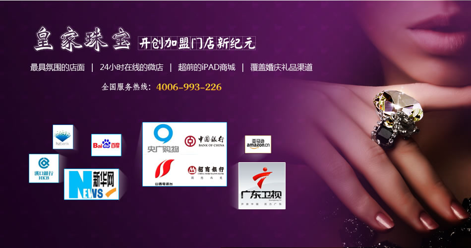 皇家珠寶2014招商加盟業(yè)務(wù)全面啟動(dòng),最新?tīng)I(yíng)銷策劃案已經(jīng)上線,可聯(lián)系我們,進(jìn)行預(yù)約獲取。