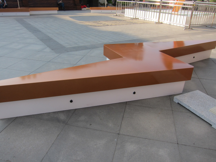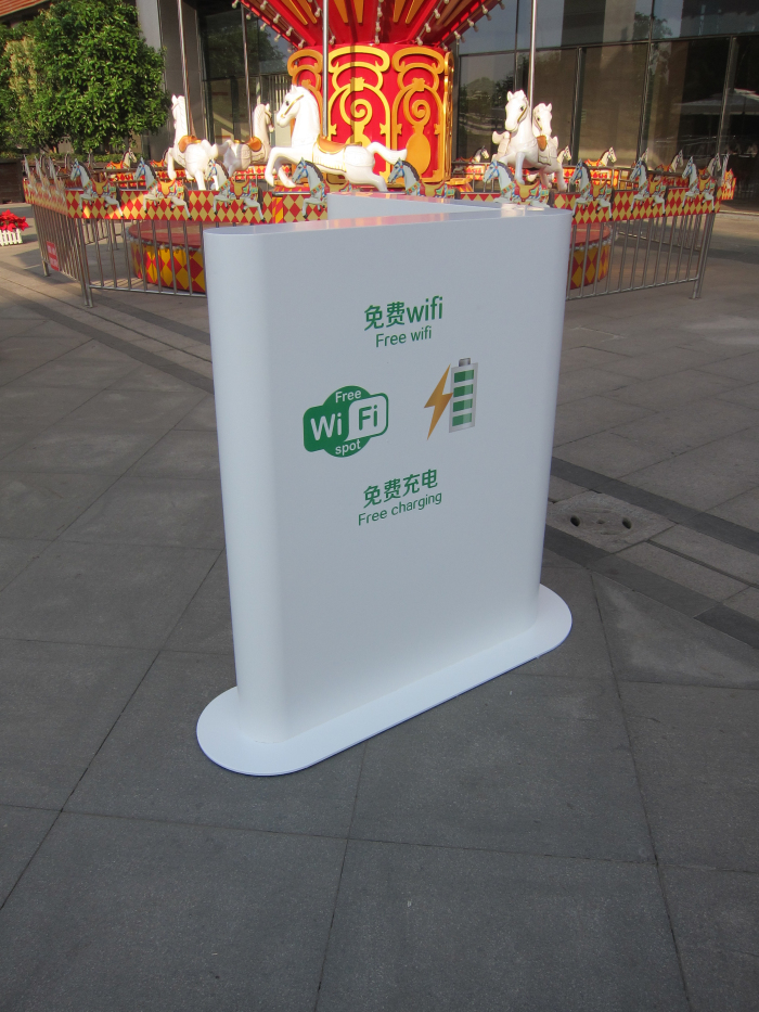 一開始我以為是個(gè)雕塑,可是這個(gè)雕塑也太雷人了吧。后來才知道這里是一個(gè)充電站,休息的座椅也做成了電的標(biāo)示,每個(gè)座椅下面都有這樣的USB接口充電。還有免費(fèi)wifi