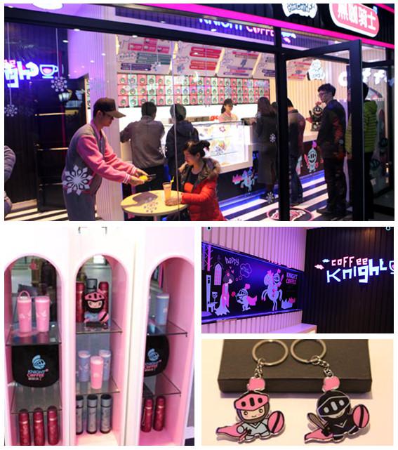 在墻角有一塊地方還放著店家特制的周邊,鑰匙扣,騎士玩偶,水杯等等,都是萌萌粉粉的風格,感覺完全是沖著女生的口味來的,少女心爆棚啊,禁不住誘惑就入了一對鑰匙扣。